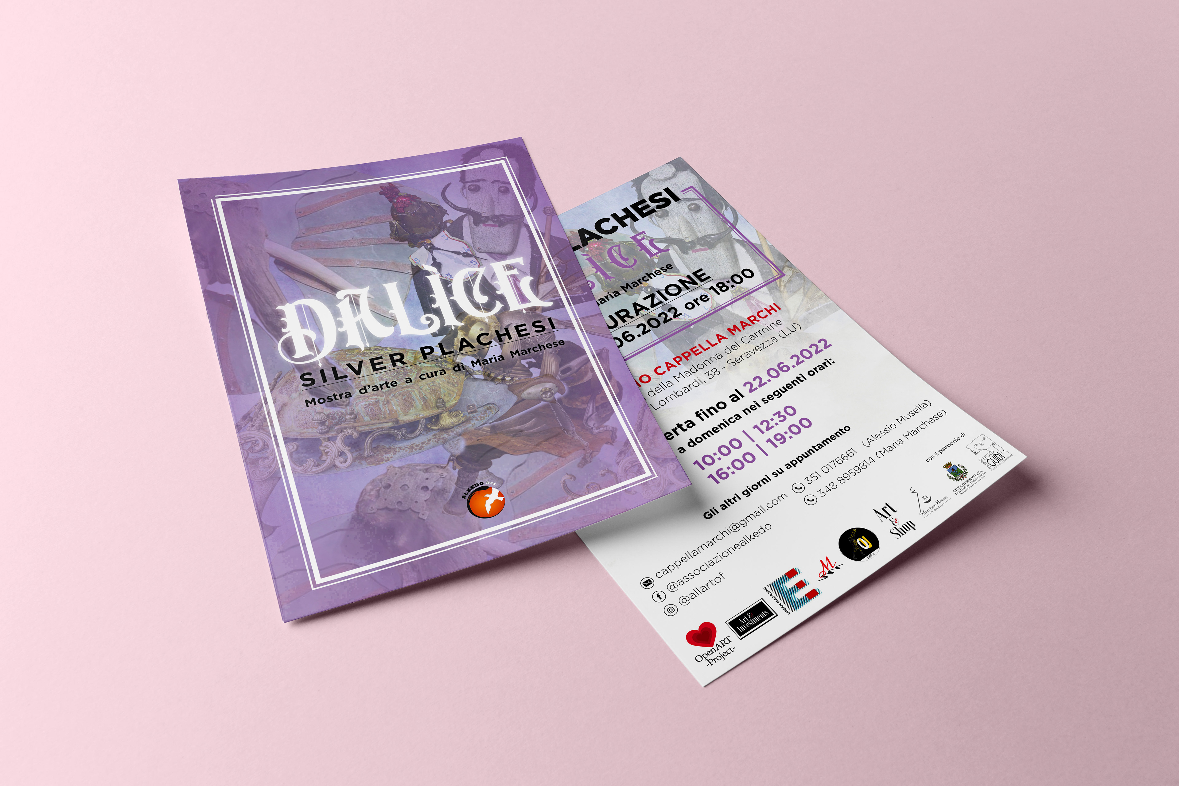 Creazione flyer per la mostra DALÌCE di Silver Plachesi a cura di Maria Marchese, giugno 2022. Lavoro svolto per Alkedo aps