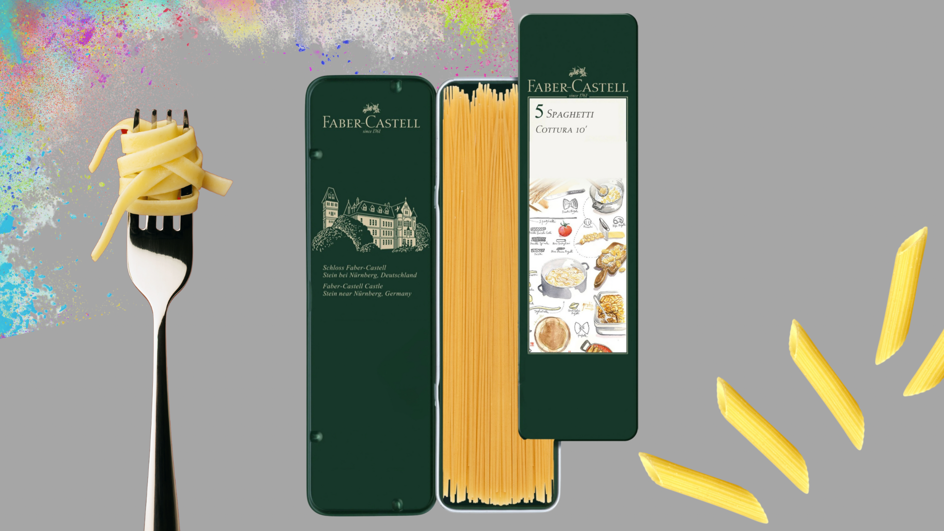 Esercizio di stile! E se la Faber-Castell producesse spaghetti? Nei suoi meravigliosi astucci avremo la pasta a colorare le nostre giornate!